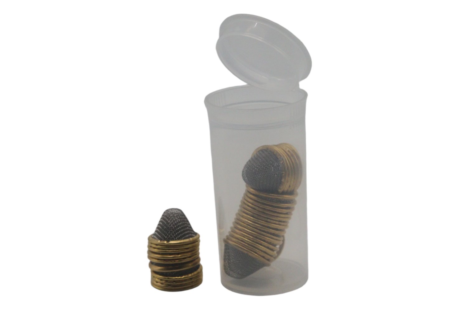 Keep your smoking sessions smooth and debris-free with our 20mm Conical Pipe Filter Gauze. Now available in a convenient 30-piece pack! Hence these high-quality brass filters are designed to fit perfectly in most pipe bowls, ensuring superior airflow and effective filtration. Neatly packed in a portable 13-dram poptop storage container, you’ll always have the filters you need on hand.