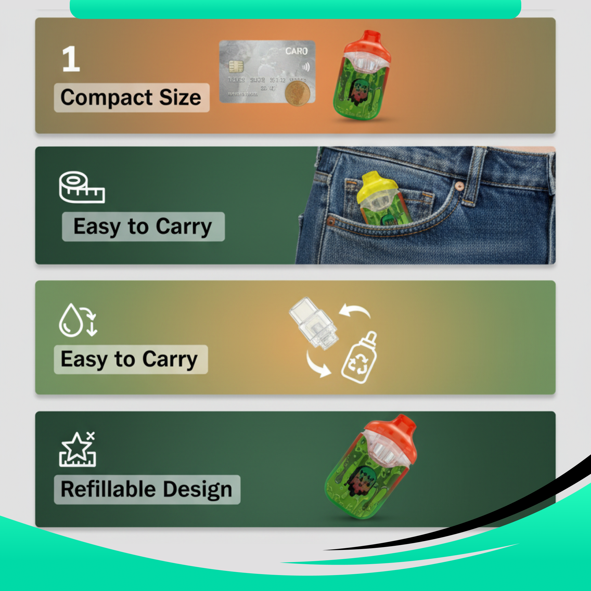 Dual-Flavor Ready – Fill with two flavors for a customizable vaping experience.