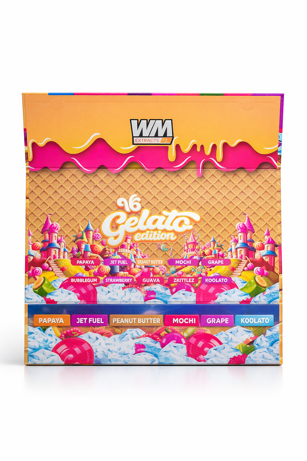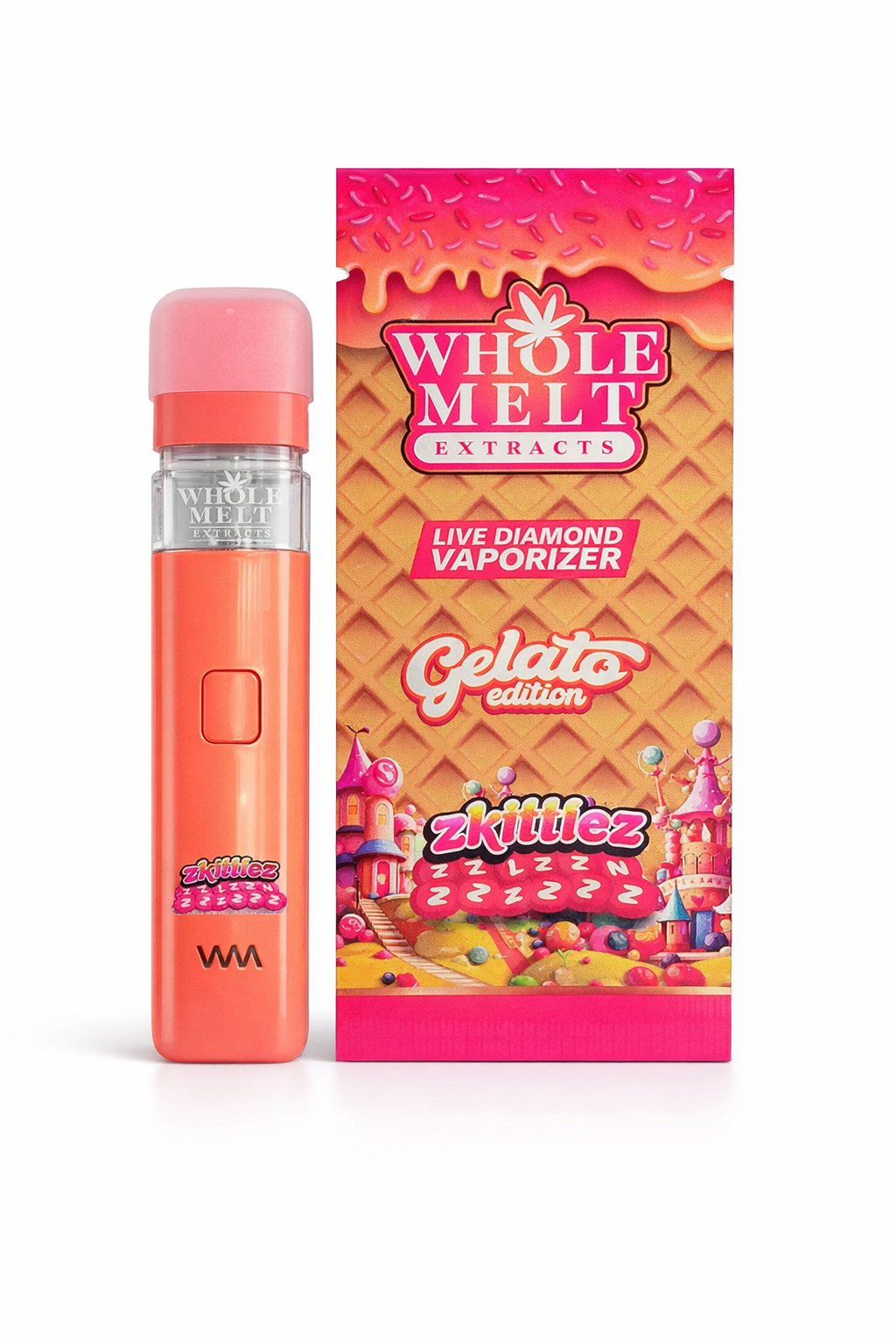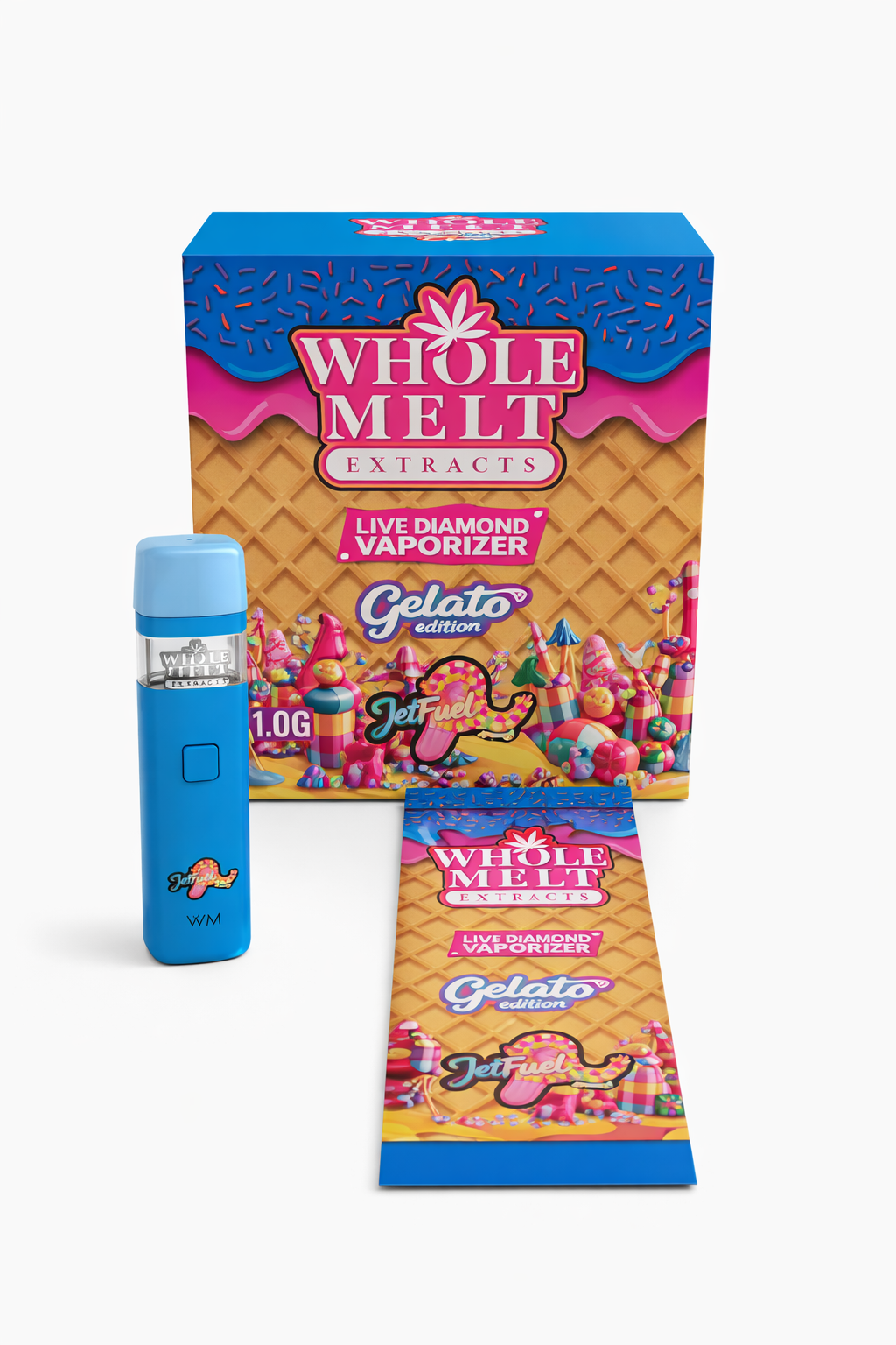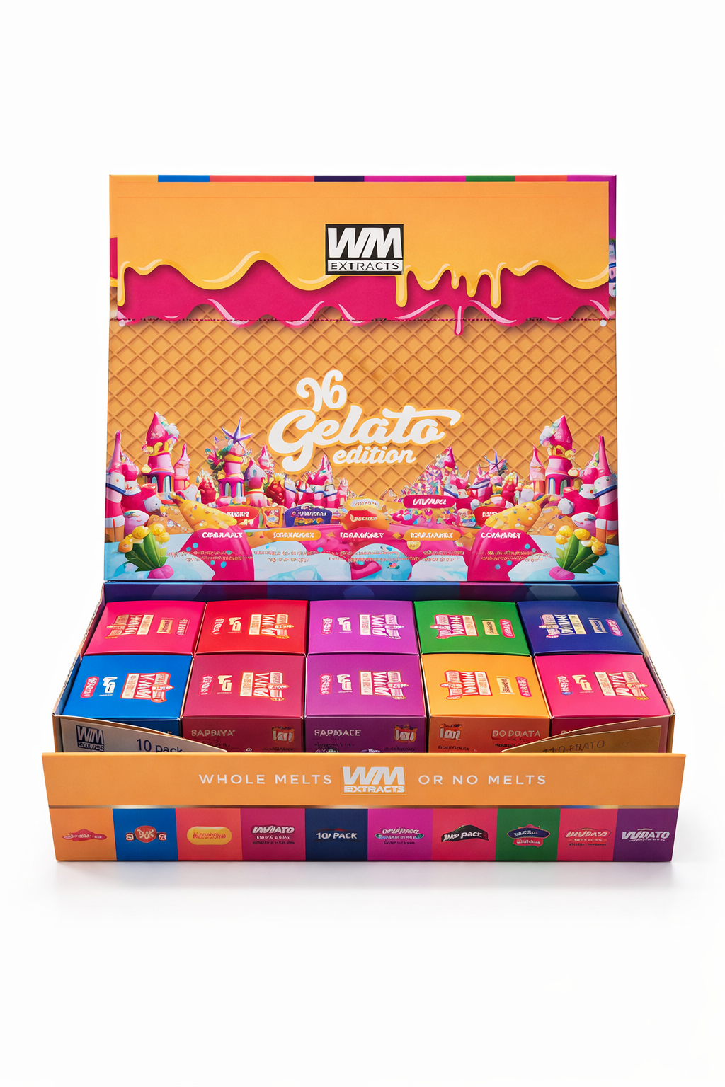 The Whole Melt Extracts Gelato Edition Live Diamond Vaporizer Box includes a premium mixed flavour selection designed for retail display and wholesale supply.