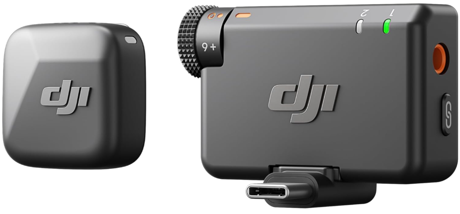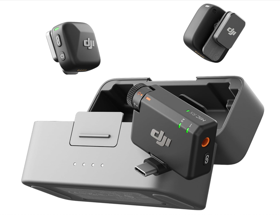 DJI Mic Mini Wireless Lavalier Microphone System (2 TX + 1 RX + Charging Case) – 48h Battery, Noise Cancelling, Automatic Limiting, 400m Range – For Camera, iPhone & Android