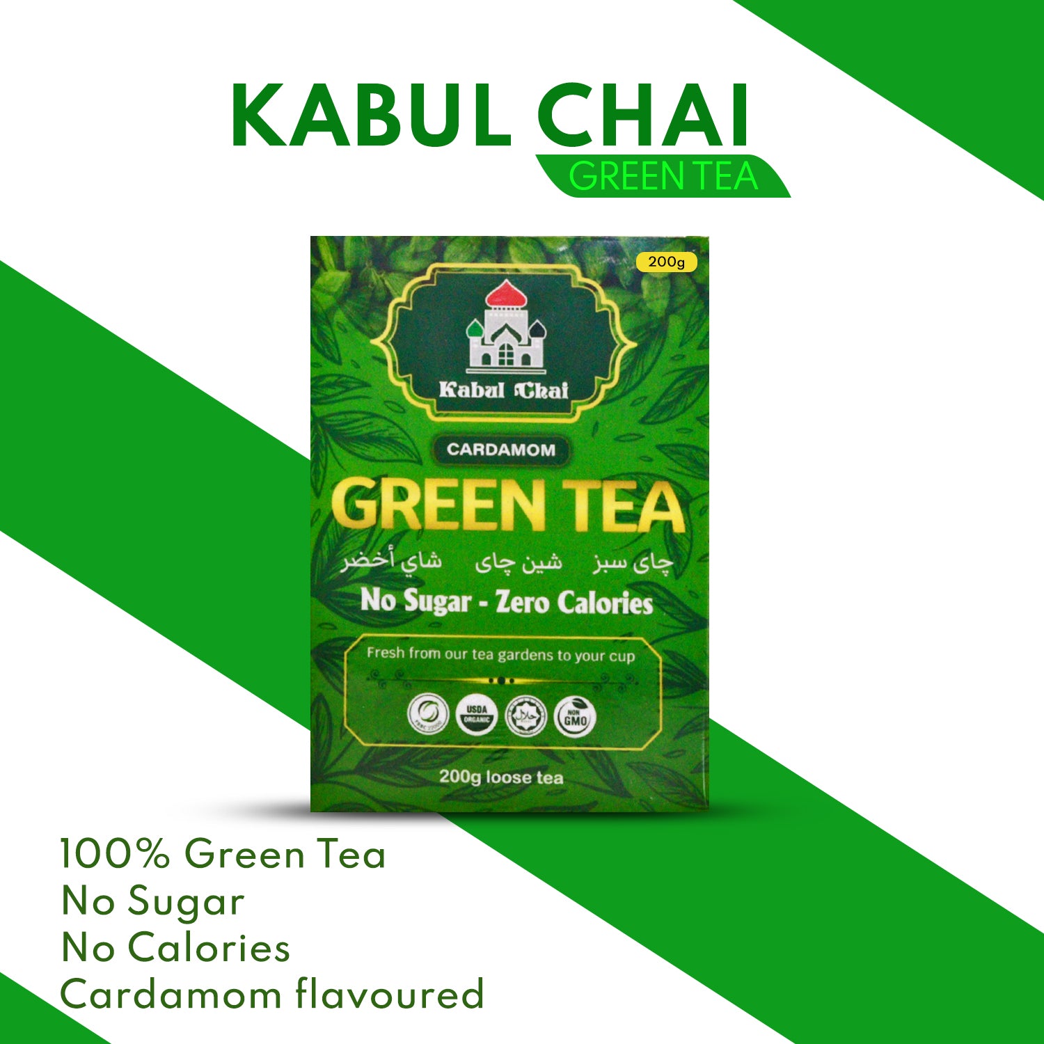 Kabul Chai: 100% Green Tea - No Sugar, No Calories | Certified | Halal | 500g | 200g Loose Tea