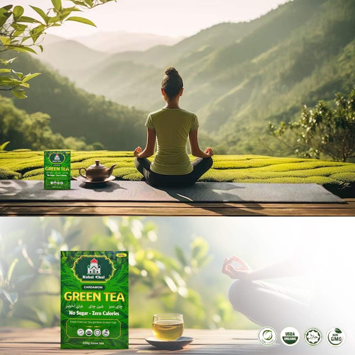 Kabul Chai, green tea, no sugar, no calories, certified Halal, loose tea, Southeast Asian highlands, fresh, fragrance, nutrition, high-quality packaging, positive customer reviews, guilt-free, natural, aromatic, wholesome, refreshing, tea enthusiasts, health-conscious, antioxidants, metabolism boost, immune support, heart health, calming properties.