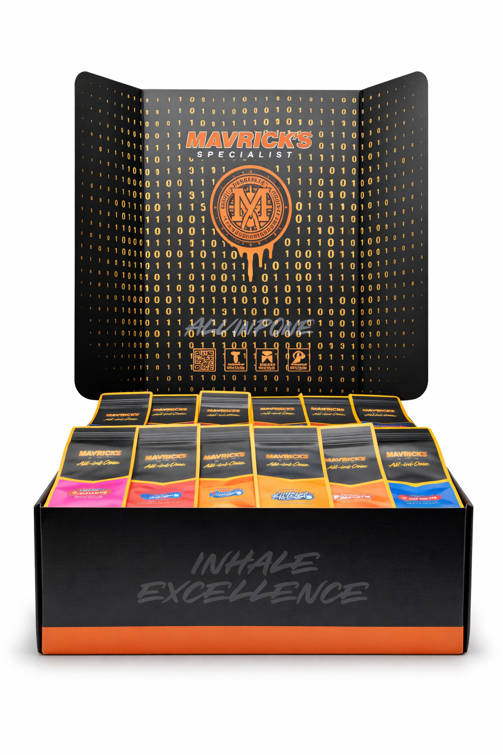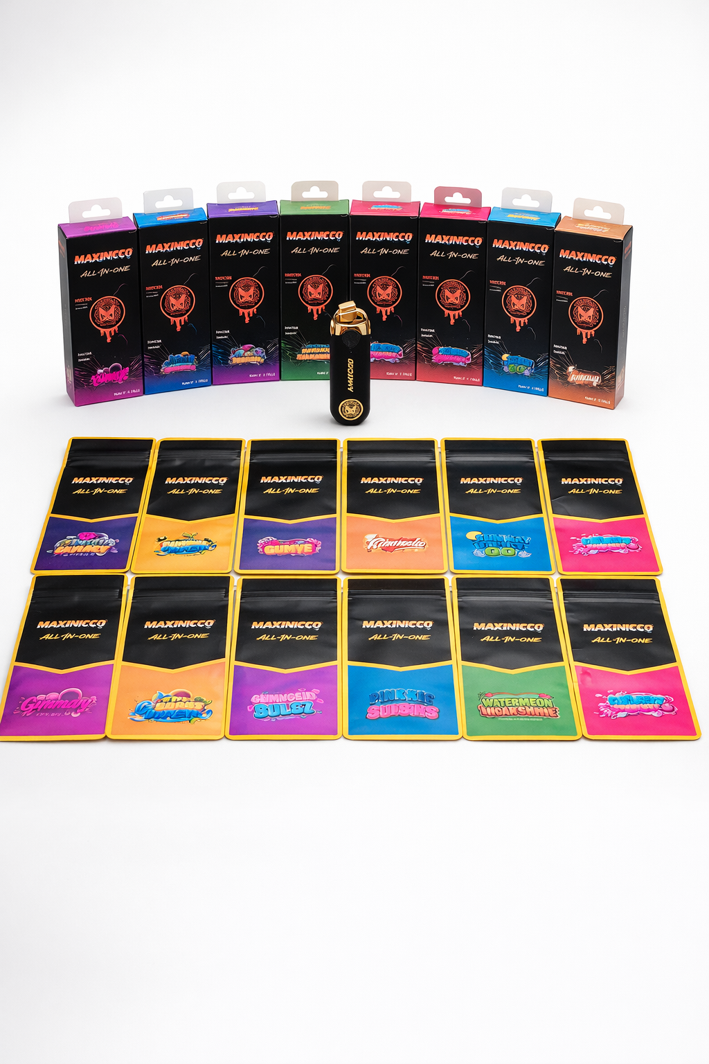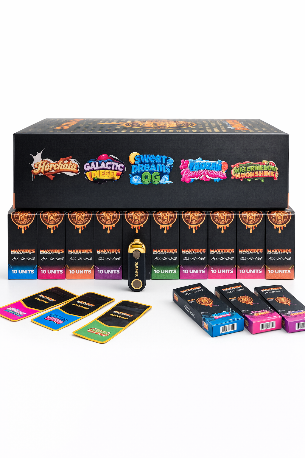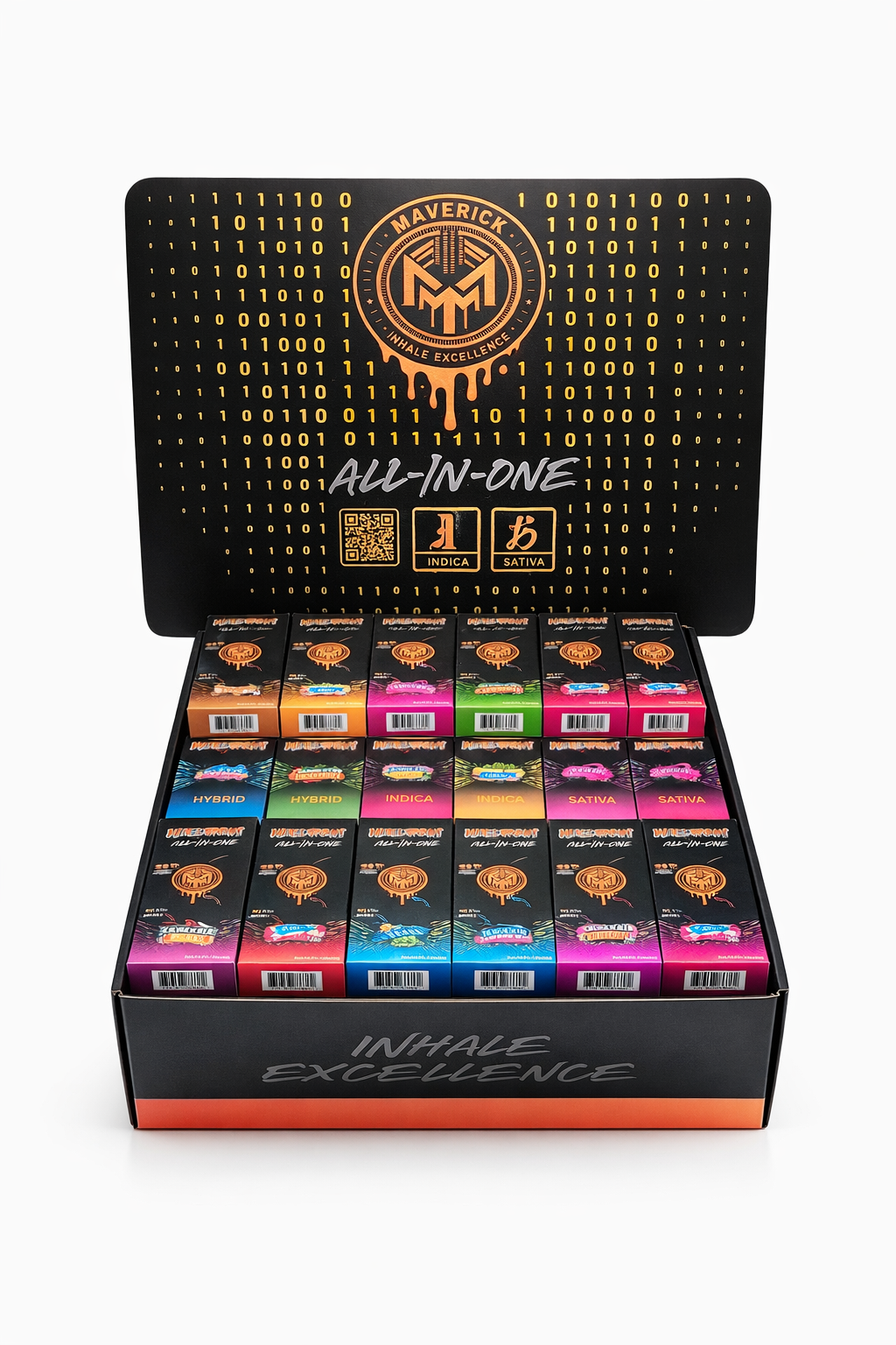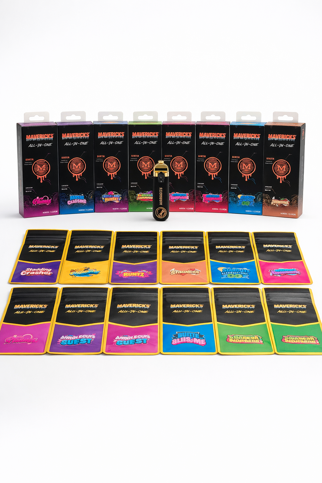 Introducing the MAVRICKS All-In-One Premium Empty Carts, designed with a sleek black & gold finish and eye-catching retail packaging.