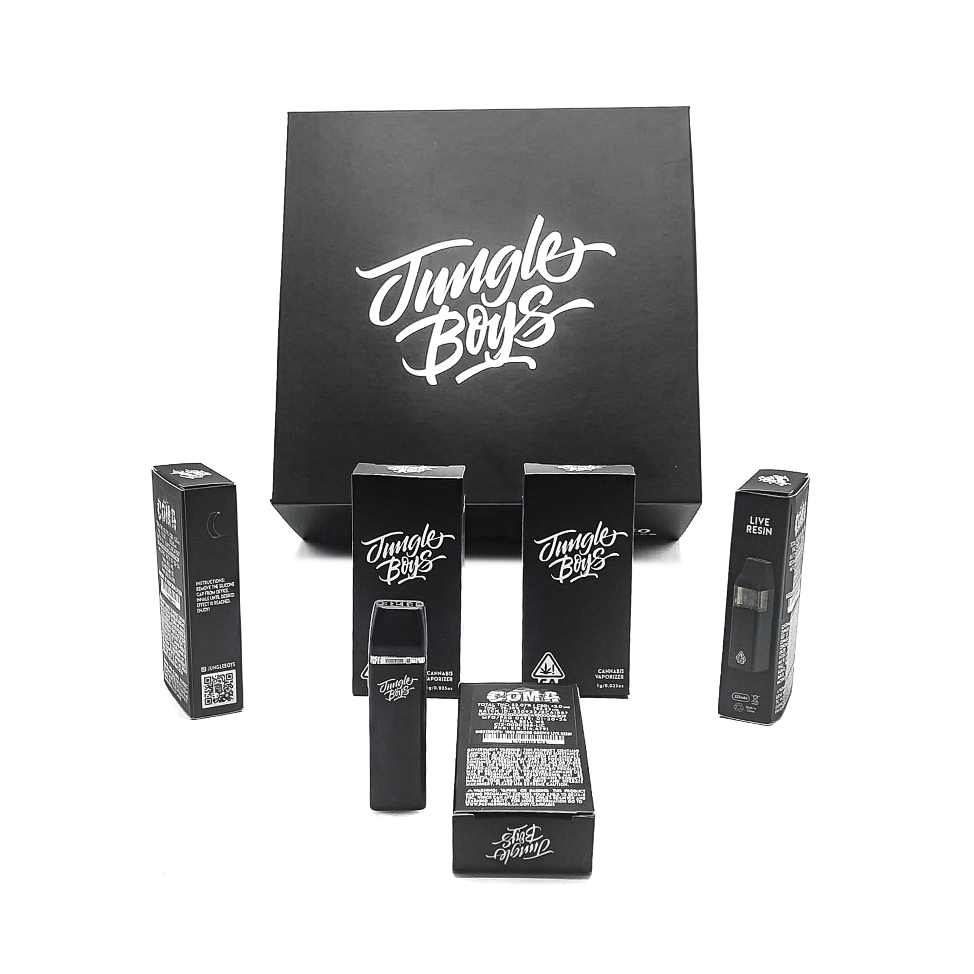 Experience the ultimate in vaporization with the Jungle Boys in Black Vaporizer. This premium vaporizer, featuring high-quality live resin, offers an exceptional flavour profile and a potent experience. Each pack contains 10 vaporizers, ensuring you have a reliable supply for your needs.