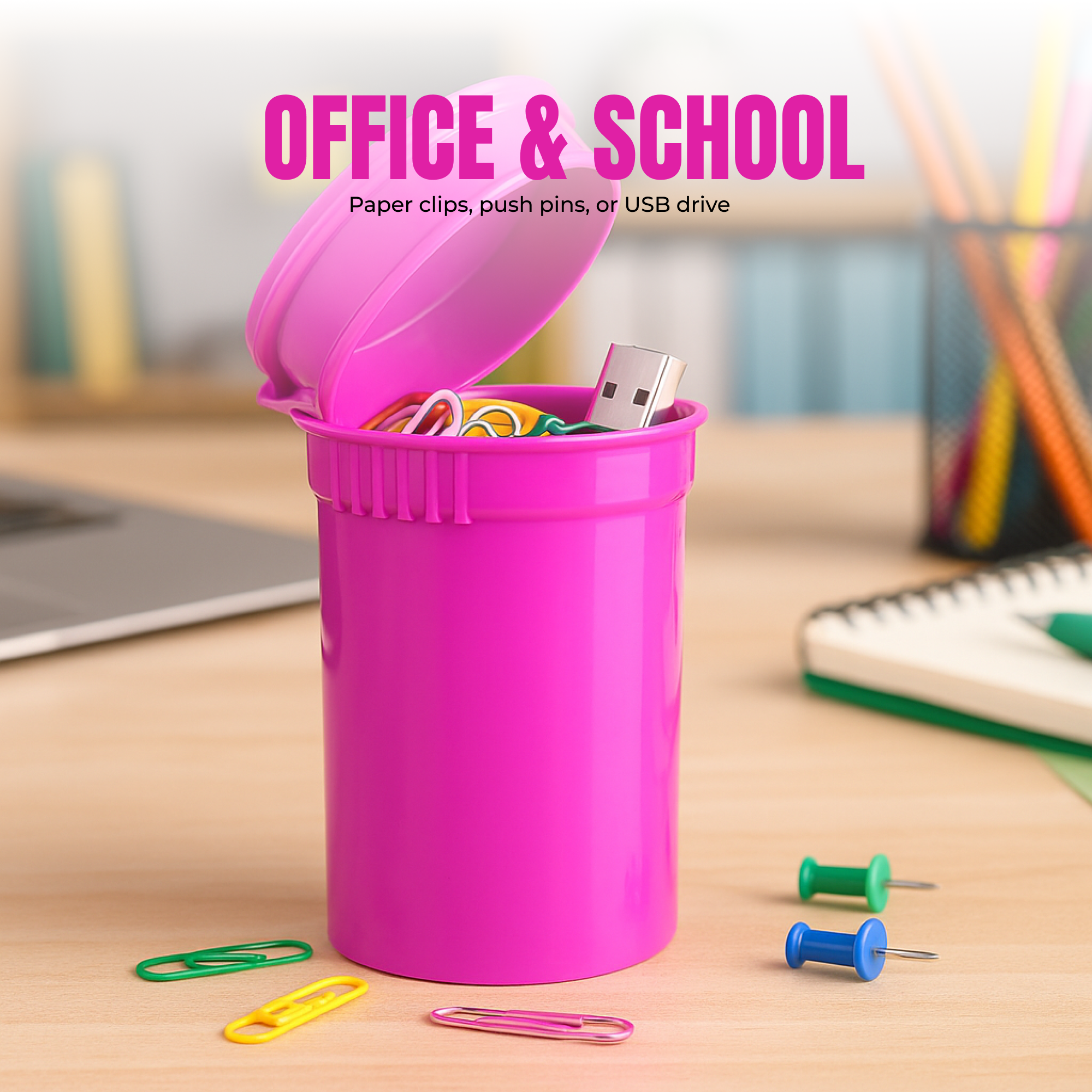 Our Pop Top Containers are perfect for businesses and individuals seeking secure, tamper-evident, and visually appealing packaging. Designed with functionality and compliance in mind, they are lightweight, recyclable, and made for modern storage needs. The sleek finish and color variety also enhance product presentation for branding or resale.